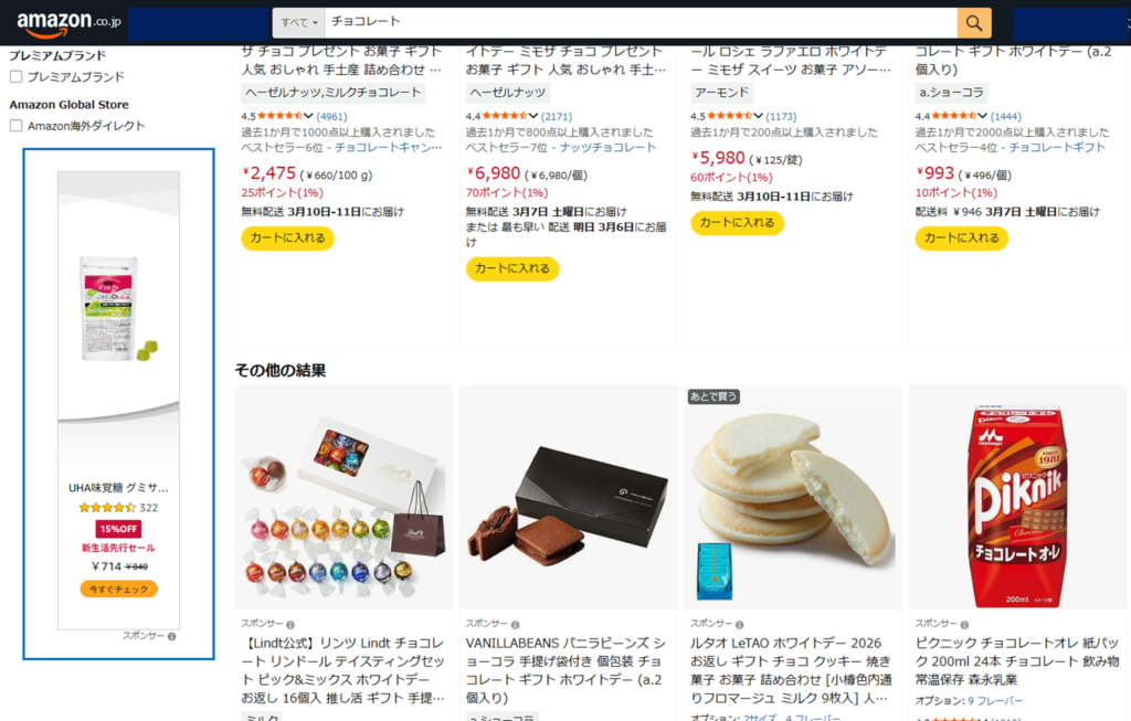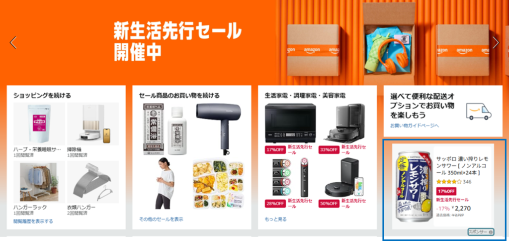 - スポンサー広告(検索連動型): Amazon内での「今すぐ買いたい」ユーザーを効率よく商品ページへ誘導する、いわば「守り」と「直近の刈り取り」の施策です。