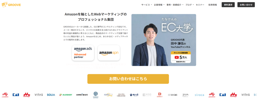 株式会社GROOVEは、Amazon出身者によって設立された、Amazon特化のD2C支援会社です。モール内の深い知見を基にした伴走型支援を行い、国内販売のみならず海外進出・国内進出支援サービスも実施。ブランドの成長を全方位からサポートします。