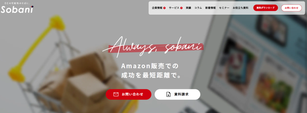 | 株式会社そばに | ECサイト立ち上げから越境支援まで | 支援内容により応相談 | Amazonを専門としたコンサルティング・運用代行会社 | https://sobani.co.jp/ |