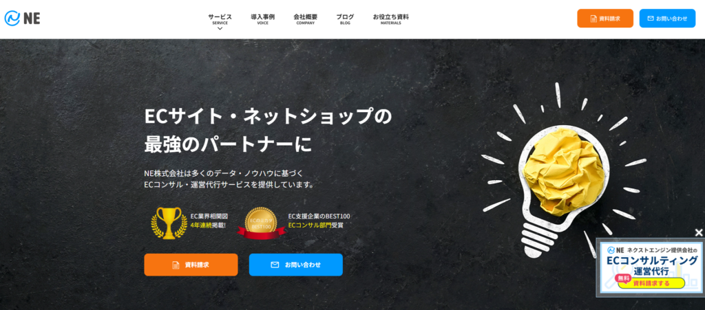 | NE株式会社 | ECサイト立ち上げ~販促まで | 月額7.5万円~ | ネクストエンジン提供元のコンサル部門 | https://ne-inc.jp/ |