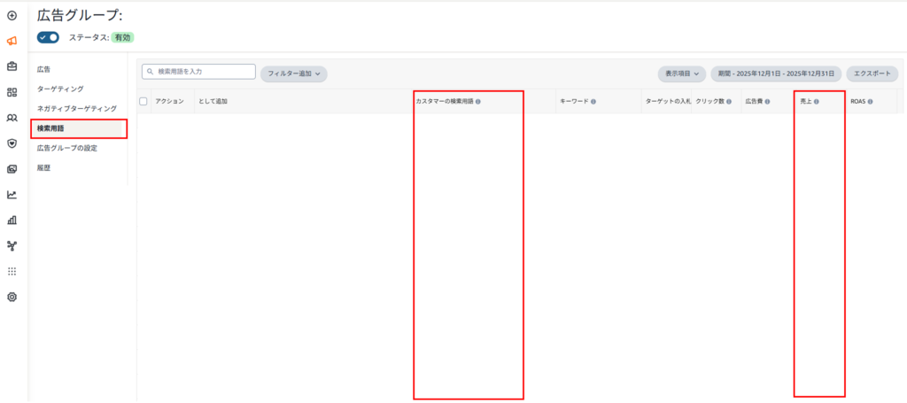 1. 広告の「検索用語レポート」を確認し、「売上に繋がっているキーワード」を特定する