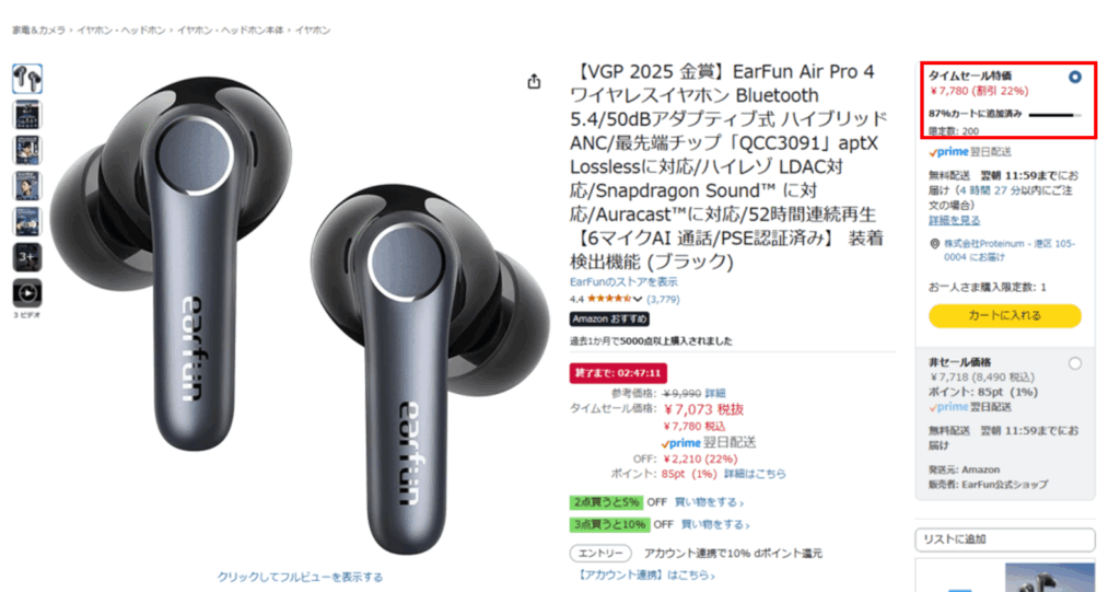数量限定タイムセールやおすすめタイムセールなどが該当します。