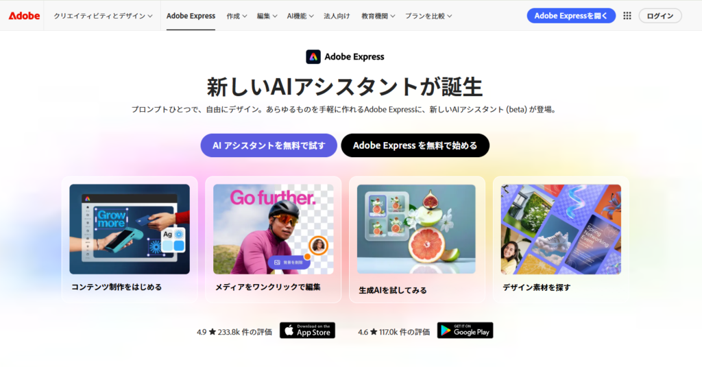 | Adobe Express グループ版 | 400円 | ・2人以上のチームに最適 ・共同作業やセキュリティの高度な機能、多くの生成AIクレジットを利用可能 |