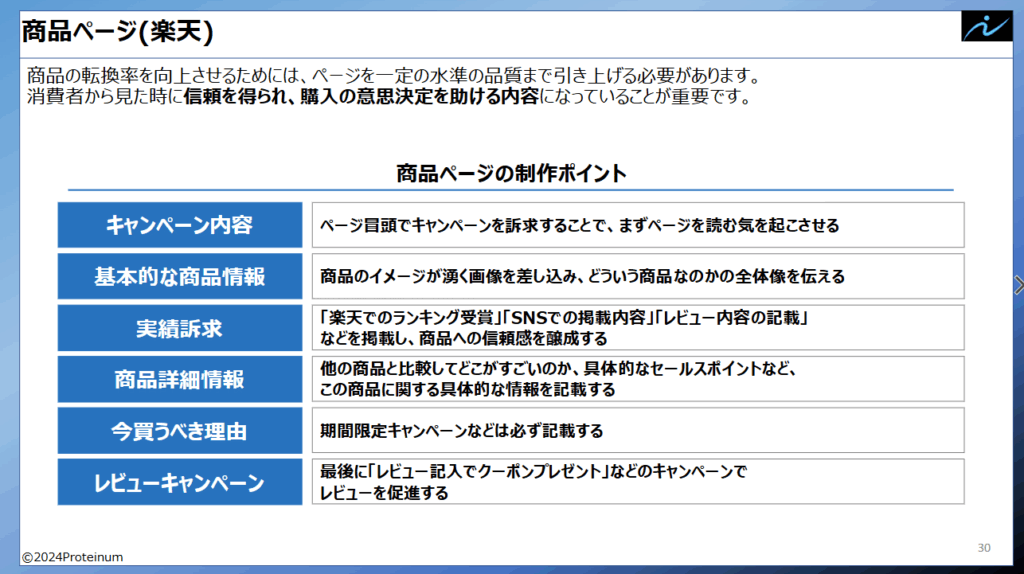 消費者側が商品ページを見たときに、必要な情報が過不足なく設置されているかを再確認します。