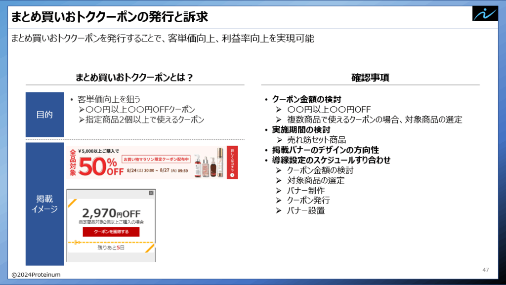 ポイント、クーポン、スーパーセールサーチなど、様々な販促手段がありますが、ロジックもなく設定している店舗様は見直しが必要です。