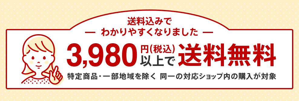 「3,980円以上で送料無料」と表示されているだけで、ユーザーは安心して購入しやすくなります。