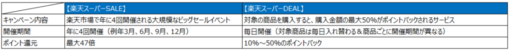 楽天スーパーDEALと楽天スーパーSALEの違い