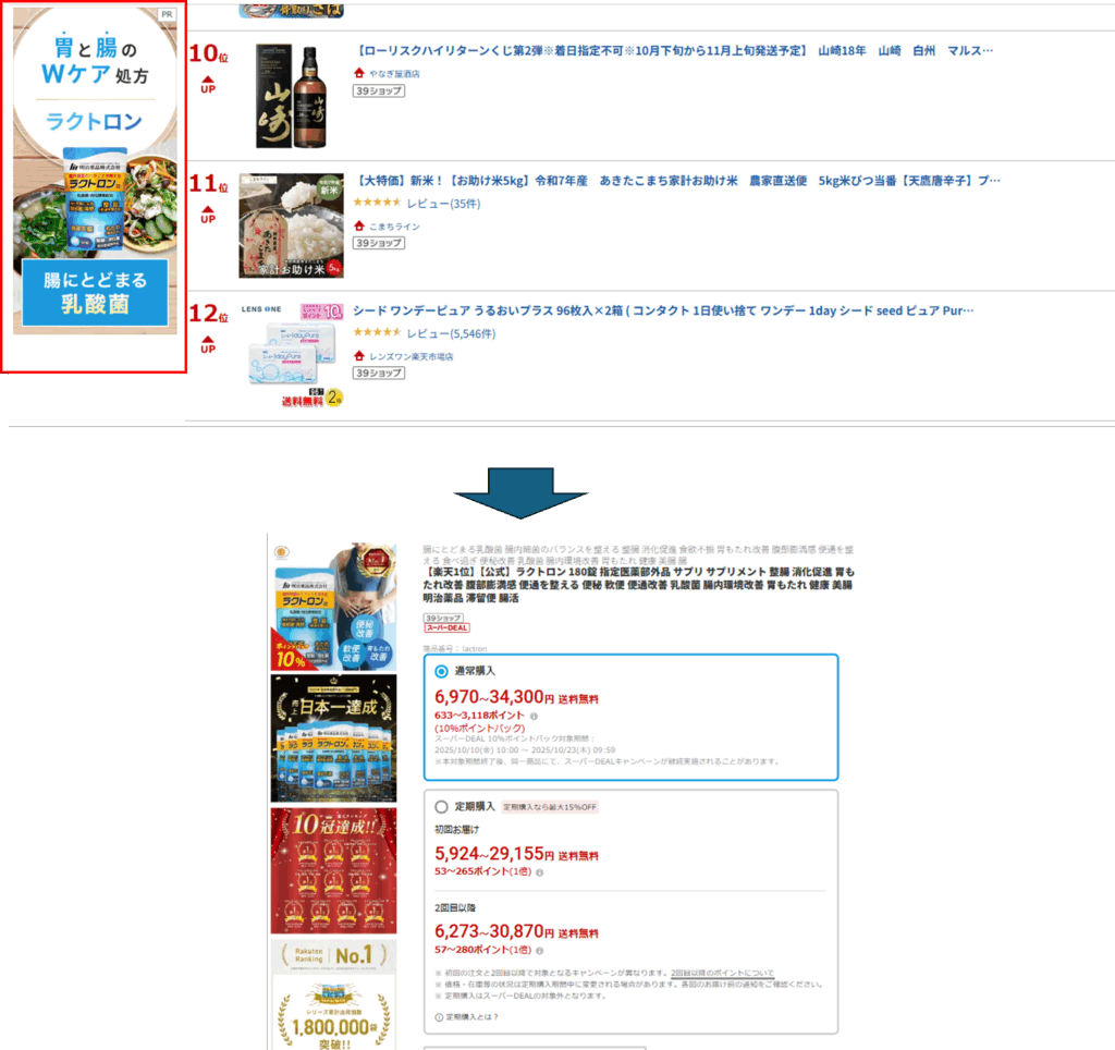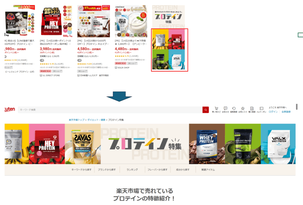 その場でのコンバージョン(購入)を最優先にする場合、商品ページに直接飛ばすのが基本的な考え方です。直接購入できるため、余計なページ離脱を防ぐことができます。