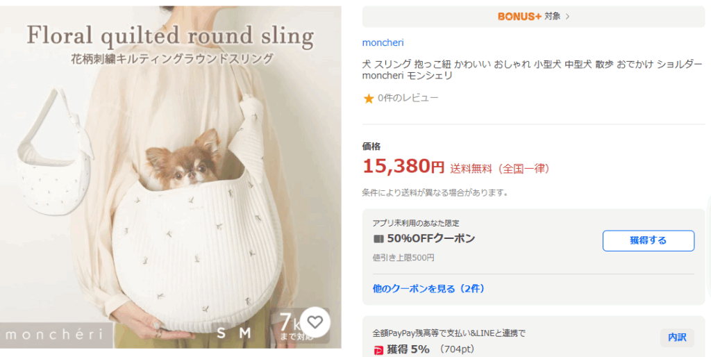 例えば、「犬 スリング」という単語だけでなく、「抱っこ紐 かわいい おしゃれ 小型犬」のように、特徴、数量を掲載することで、クリック率の向上に繋がります。
