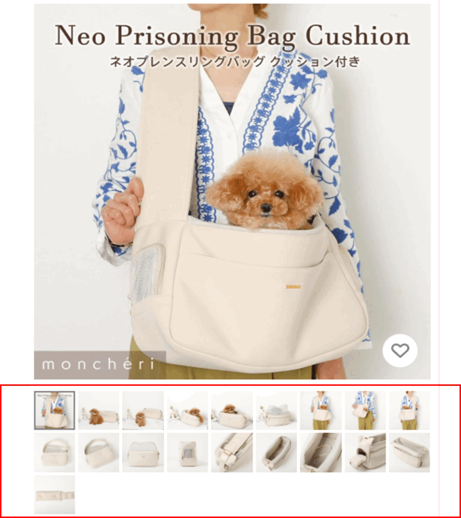 - 複数画像の利用:複数の画像を使って、使用シーンやサイズ感を伝えていただくことで、ユーザーの安心感が増し、購買意欲に繋がります