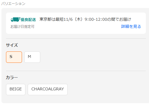 カラー展開やサイズ違いがある商品に関しては、バリエーションを登録し、増やすことを推奨します。バリエーションを登録することで、購入ページ内で回遊を促すことが可能となり、転換率の向上に繋げることができます。